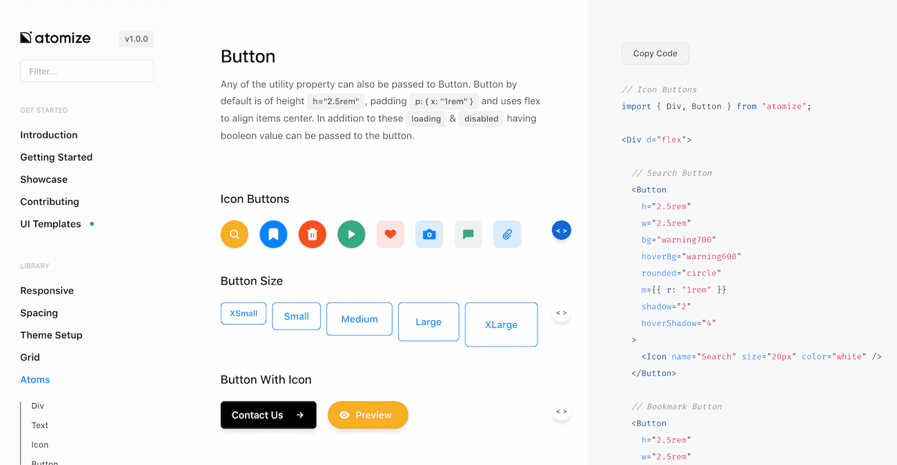 Ter uma solução verdadeiramente personalizada permite controle total sobre sua documentação. Um exemplo pelo qual estou extremamente impressionado é o Atomize React.